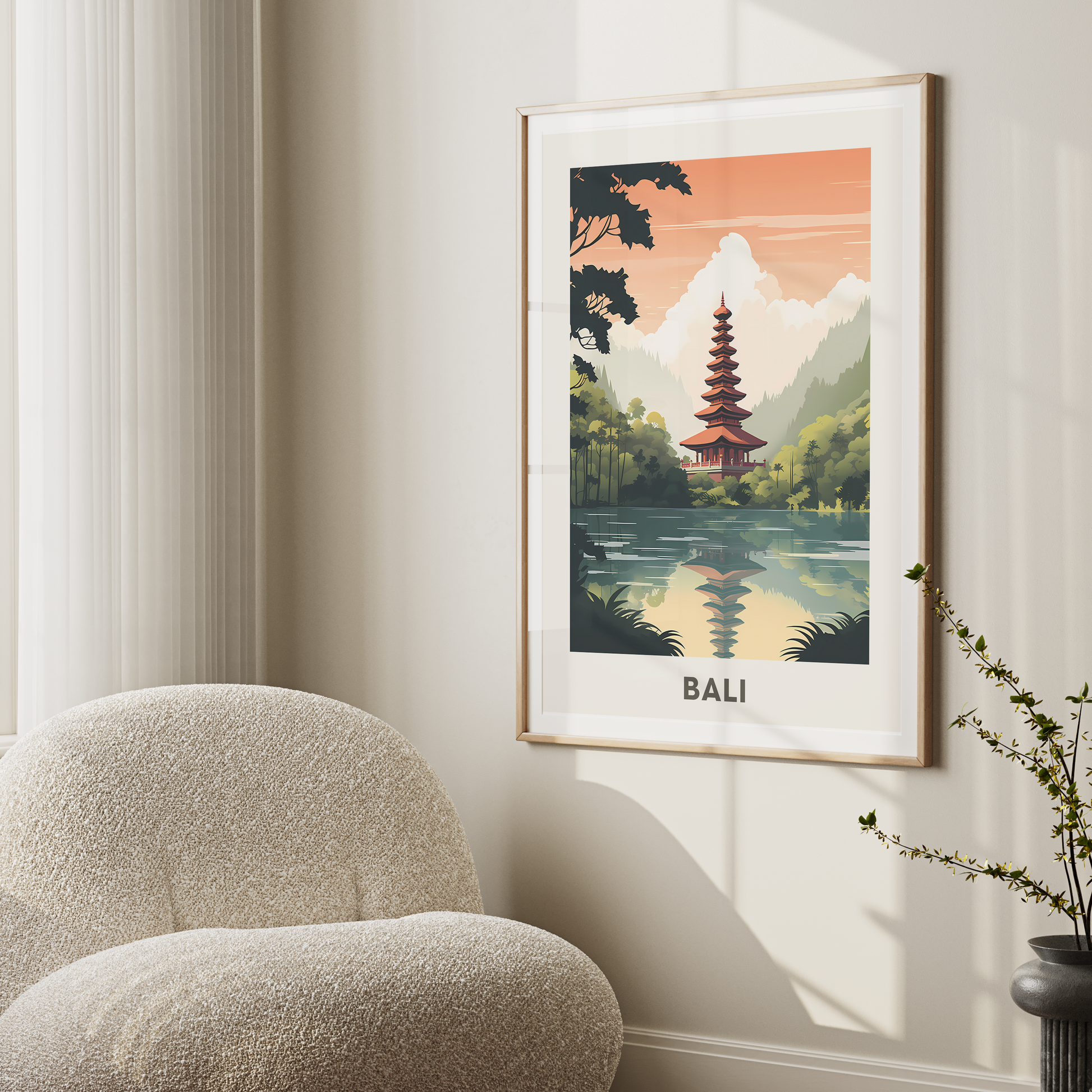 The serene landscapes and rich cultural heritage of Bali are captured in this stunning artwork, making it a must-have for travel enthusiasts and art lovers alike. Let the essence of Bali fill your space and transport you to the island of gods with this exquisite illustration print.
