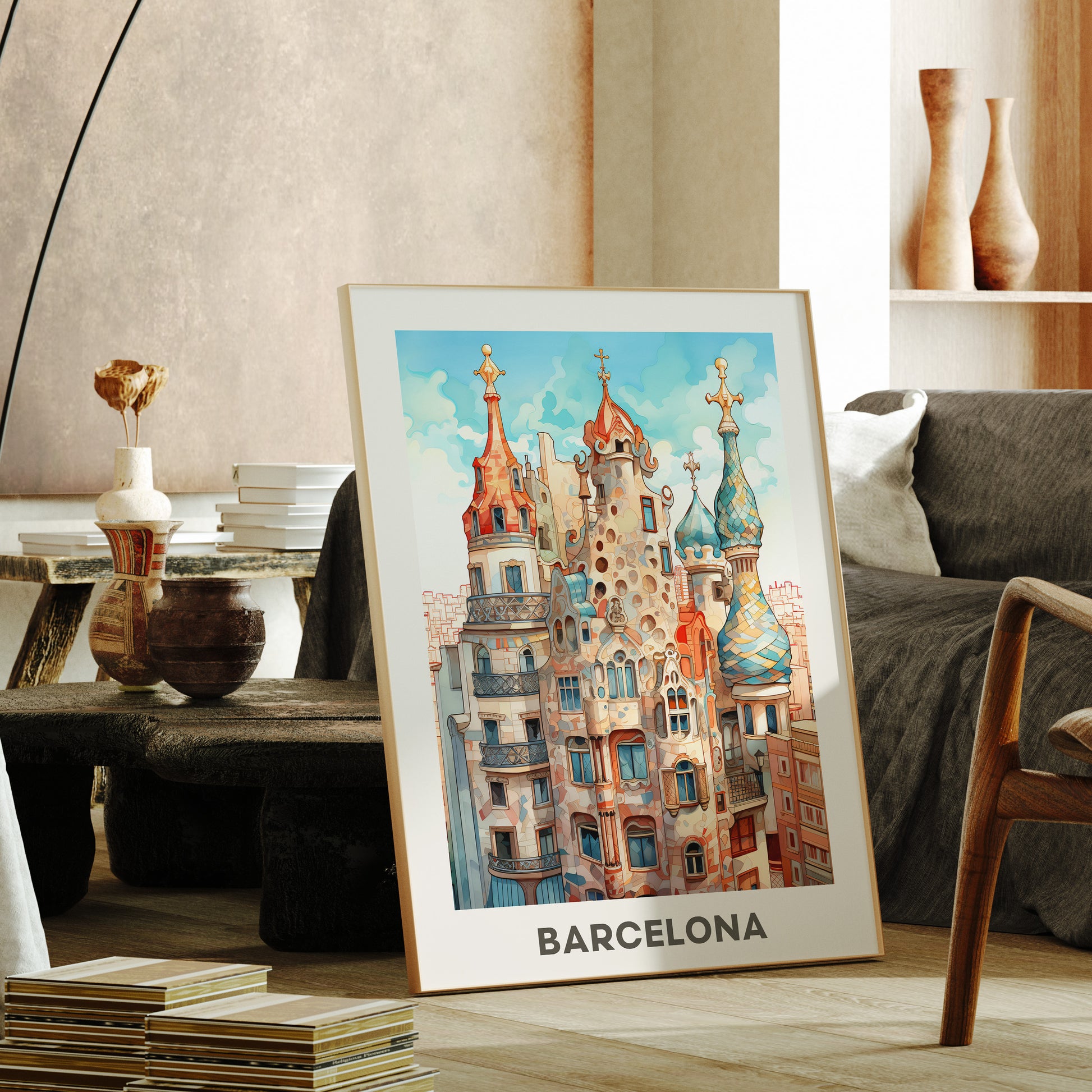 Immerse yourself in the timeless beauty of Barcelona with this colorful illustration print. Featuring the city's architectural marvel. Perfect as a travel gift or wall art, this print allows you to bring the artistic spirit and cultural heritage of Barcelona into your home.